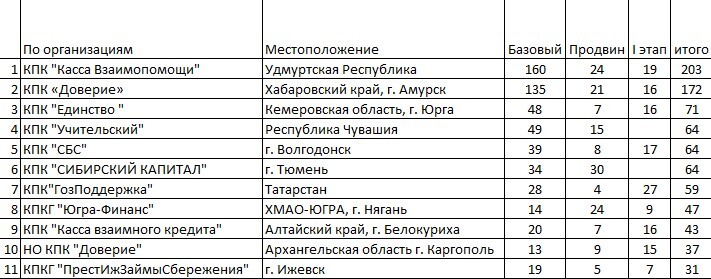 Второй этап проводился для пайщиков кредитных кооперативов и состоял из двух уровней: базовый и продвинутый.